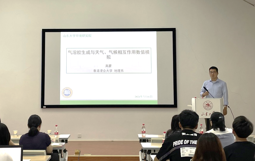 高蒙助理教授以“气溶胶生成与天气、气候相互作用数值模拟”为题,首先介绍了亚洲的高浓度气溶胶对人类健康和气象条件的不利影响;随后阐述了关于气溶胶辐射反馈作用的最新研究进展,并指出黑碳的作用不容忽视;最后,高蒙助理教授指出气候变化会影响气溶胶分布,并特别强调了风速降低对空气质量带来的不利影响。在座师生就报告内容提出问题并与高蒙助理教授展开了热烈的交流与讨论。报告内容丰富、深入浅出,赢得了全体师生的热烈掌声。会后,高蒙助理教授参观了TapTap点点大气环境化学实验室与青岛蓝谷大气环境观测站,并表示希望未来能在区域空气质量联合观测、大气污染成因与气候健康效应分析等方面进行深入合作。