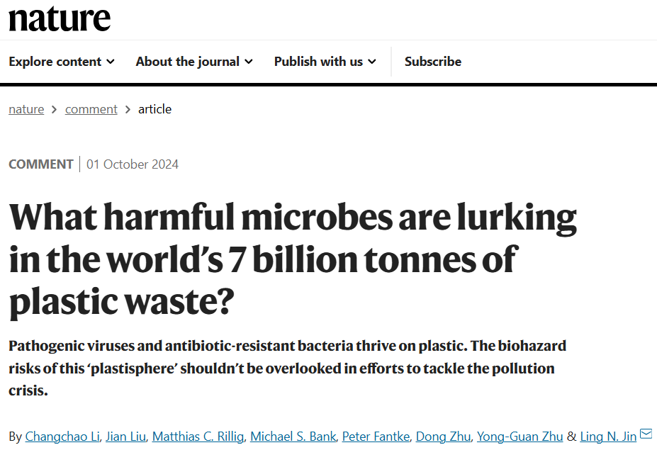 2024年10月,我院博士毕业生李长超所在的香港理工大学金灵团队,应Nature期刊邀请,联合国内外领域专家发表评述文章《全球塑料垃圾中的“潜行者”》,阐明塑料际微生物如何影响生态系统运转并威胁人类健康,提出全球应对战略,呼吁全球各界共同努力,有效解决塑料污染危机。李长超为论文第一作者,相关论文见Nature杂志,网址:https://www.nature.com/articles/d41586-024-03150-6